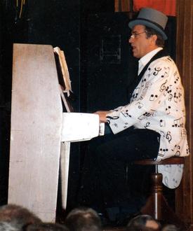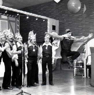 Jeder konnte aber auch seine besonderen Talente zu Gehör bringen. So z.B. Gerhard Pappert, der Hans Moser wie niemand sonst parodieren konnte. Oder Helmut Scheel, der als „Dschingis Khan“ sportliche Hochleistung auf die Bühne gebracht hat. Und er war sich auch nicht zu schade einen Text wie „Mir Klenne, mir Klenne, mir woarn scho immer Schönne“ als Solo zu singen. Helmut war nur ca 1,63 groß, aber für uns einer der Größten.