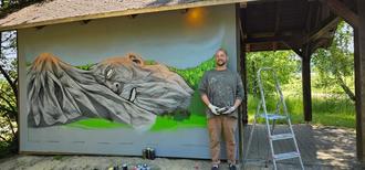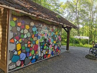 Vom Aktionstag wird auch dauerhaft etwas bleiben: In Eckweisbach, am Tunnel, in Langenbieber und in Wiesen sind die restlichen Schutzhütten umgestaltet worden. Beim Kunstwerk in Eckweisbach haben zwölf Kinder in einem Workshop der Kinder-Akademie Fulda die Rhön nach ihren Vorstellungen gemalt. Am Tunnel konnten sich unter der Anleitung von Ingmar Süß die Radler verewigen, ebenso in Langenbieber mit Hilfe von Veronika Zyzik. An der Schutzhütte Wiesen war Lars Bubenheim tätig, der dort den Riese Mils wiederaufleben ließ. Außerdem sind die Info-Tafeln entlang des Radweges erneuert worden. Es lohnt sich also, immer mal wieder am Milseburgradweg vorbeizuschauen und die neuen Eindrücke auf sich wirken zu lassen.