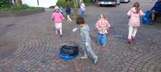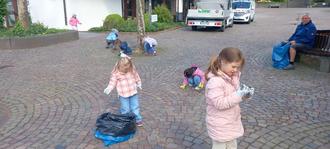 Mit Zangen, Handschuhen und Müllsäcken bestückt, zogen Kinder und Erziehern durch den Ortskern Petersberg und sammelten vier große Säcke Müll.