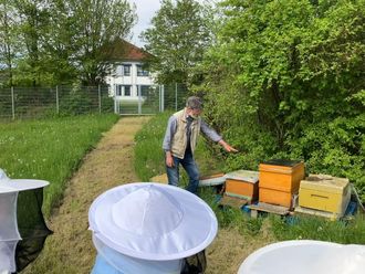 Auch in diesem Jahr startete Herr Rieser vom NABU wieder mit den 4. Klassen der Wendelinusschule das jährliche Bienenprojekt zur Herstellung von Honig.
