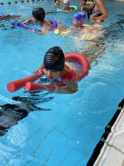 Zu Beginn steht die Wassergewöhnung im Vordergrund. In spielerischer Form lernen die Kinder das Element Wasser kennen, und anfängliche Ängste können genommen werden. Begleitet werden wir seit mehreren Jahren von unserer Schwimmlehrerin Astrid Bleuel. Durch gezielte Übungen und Wiederholungen erlangten bei uns in diesem Jahr 16 Kinder das Seepferdchen und 6 Kinder den Seeräuber.
