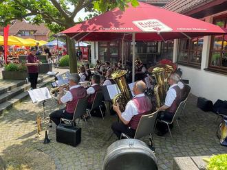 Im Rahmen der Rathausplatzkonzerte der Gemeinde Petersberg hatte der Musikverein Margretenhaun e.V. am 18.06.2023 zu seinem diesjährigen Konzert mit bunt gemischtem Programm auf den Rathausplatz Petersberg eingeladen.