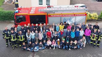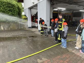 Am Morgen kamen viele Feuerwehrmänner und-frauen zu uns und wir wurden in Gruppen eingeteilt. Daraufhin sind wir mit drei Löschfahrzeugen nach Steinhaus zur Feuerwehr gefahren. Es waren fünf Stationen für uns vorbereitet. An einer Station haben wir einen Film gesehen, in dem ging es um gutes und schlechtes Feuer sowie über die Aufgaben der Feuerwehr. An der nächsten Station sollten wir Wasserflaschen mit Kübelspritzen umspritzen. Bei der dritten Station lernten wir die Ausrüstung eines Feuerwehrmanns kennen und durften diese anziehen und in einem dunklen Raum Kuscheltiere retten. In Steinau wurde uns die Ausstattung eines Löschfahrzeugs gezeigt. Auf dem Hof haben wir dann noch mit einem Wassserschlauch Zielspritzen gemacht.