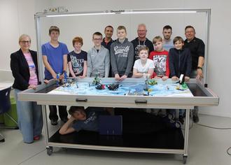 Unter Anleitung von Ausbildungsleiter Mario Winter bauten die Schülerinnen und Schüler den Tisch in der betriebseigenen Werkstatt der Firma MES GmbH. Mehrere Nachmittage investierten die jungen Tüftler in das Projekt und erhielten dabei wertvolle Einblicke in betriebliche Abläufe sowie die praktische Umsetzung technischer Konzepte.