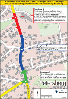 Der bevorstehende Bauabschnitt 1.2 umfasst denAusbau der Straße „Eichzagel“ zwischen der Einmündung Goerdelerstraße und der Einmündung Weiherweg (siehe Übersicht). Während der Sommerferien vom 07.07. bis zum 15.08.2025 ist der Ausbau des Eichzagels einschließlich der Einmündung Goerdelerstraße und der Einmündung der Nebenstraße Eichzagel Haus-Nr. 15 bis 25 vorgesehen. Geplant ist, innerhalb der Sommerferien die Fahrbahn und die Gehwege komplett fertigzustellen. Während der Baudurchführung wird - soweit möglich - die Erreichbarkeit der direkt betroffenen Anliegergrundstücke mit dem Auto gewährleistet. Die Anwohner werden mit einem Schreiben separat informiert.
