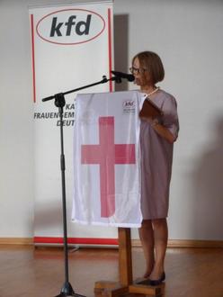 Bei dem anschließenden Festakt im Pfarrheim konnte Maria Bug Bettina Faber-Ruffing, Vorsitzende des Diözesanverbandes der kfd im Bistum Fulda, Carsten Froß, Bürgermeister von Petersberg, Winfried Bug, Ortsvorsteher von Steinhaus, Gabriele Schmitt-Lauer, stellvertretende Ortsvorsteherin von Steinau, und die örtlichen Vorstände der ortsansässigen Vereine begrüßen.