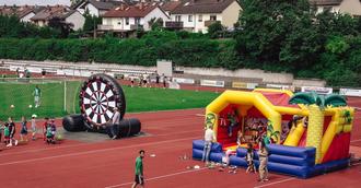 Wem das noch nicht genug war, der konnte sich in den Pausen auf der Hüpfburg oder beim Fußballdart austoben.