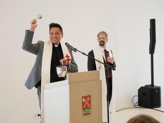 Pfarrer Pasaribu (links) und Pfarrer Pfeifer segneten die Räumlichkeiten.