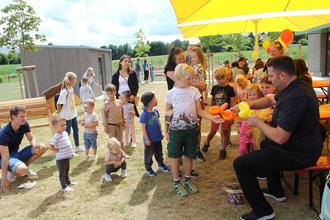 Zahlreiche Besucher nutzten danach bei einem Tag der offenen Tür die Möglichkeit, die Kita einmal zu besichtigen. Mit Würstchen vom Grill und kühlen Getränken war für das leibliche Wohl bestens gesorgt, dazu hatte der Elternbeirat Kuchen gebacken. Zauberer Tobi unterhielt die Kids - und an den gelungenen Tag werden sich sicher nicht nur die Kleinen lange erinnern. Am Ende waren sich alle einig: Gut, dass die Einweihung noch nachgeholt wurde.