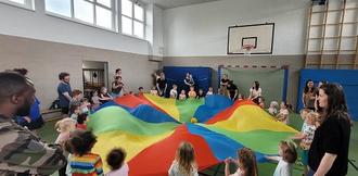 Auch die Eltern waren mit Feuereifer dabei und unterstützten mit turnerischen Einlagen.