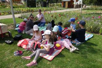 Am 04.07.23 war es endlich soweit, die Schulanfänger machten ihren Abschlussausflug zur LGS nach Fulda. Um 10 Uhr ging es am Himmelszelt los, Pfarrer Scheer begrüßte uns und erzählte uns viele spannende Dinge über das Himmelszelt. Anschließend fuhren wir mit dem Shuttlebus zum Kulturgarten. Die Busfahrt war für viele Kinder ein echtes Highlight. Dort haben wir uns erst mal bei einem Picknick gestärkt, bevor wir den Spielplatz und die Kugelbahn unsicher machten. Nach einem erfrischenden Eis machten wir uns auf zum Sonnengarten, wo wir Frau Bloch, unsere Führerin, trafen. Gemeinsam mit ihr erkundeten wir den Wirgarten, den Fuldaacker und den Sonnengarten.