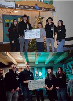 gesammelten Spenden zusammen. Die Schecks in Höhe von von je 750€ wurden von Ploatzknecht Leon Lechfellner, Ploatzmagd Anika Nogga, Schnapsknecht Florian Kümmel und Schnapsmagd Johanna Streitenberger Ende Dezember an den Kindergarten Burgenland Steinhaus sowie den Kinder- und Jugendhospiz Osthessen