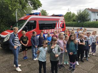 Mit ihren beiden Lehrerinnen bedanken sich die Schülerinnen und Schüler sehr herzlich für diese sehr abwechslungsreich gestalteten Schulstunden, die einen sehr handlungsorientierten Baustein im Rahmen der schulischen Brandschutzerziehung darstellen.
