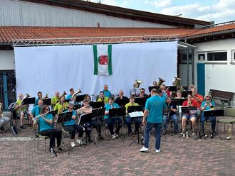 „Wir Petersberger Musikanten, gemeinsam musizieren und Spaß haben“, das war das Motto des 1. Petersberger Musikantentags. Am Sonntag, 13.07., war es soweit. 30 Musikerinnen und Musiker aus den Musikvereinen der Gemeinde Petersberg trafen sich zum 1. Mal, um zu musizieren. Gemeinsam wurden bekannte Polkas, wie der „Böhmische Traum“ oder die „Vogelwiese“ gespielt, aber auch neue Stücke wurden unter der Leitung von Hubertus Semmler (Dirigent des Musikvereins Petersberg und Musiker der Haunedorfer Musikanten) einstudiert. Mit Leidenschaft und Spaß an der Musik wurden die Stücke bei einem Platzkonzert, auf dem Dorfplatz in Almendorf, zum Besten gegeben. Das Publikum honorierte die Arbeit der Musikerinnen und Musiker mit viel Applaus. Bei strahlendem Sonnenschein begrüßte der Erste Beigeordnete Hartwig Blum im Namen der Gemeinde Petersberg die bunte Musikerschar und die vielen Gäste von Nah und Fern. Ausrichter des 1. Petersberger Musikantentags waren die Haunedorfer Musikanten. Die Musikerinnen und Musiker bedanken sich bei der Gemeinde Petersberg für das Ermöglichen eines gemeinsamen Probetags. Ein besonderer Dank geht an Gudrun Höhl für die Organisation des Tages und an Hubertus Semmler für die musikalische Leitung. Alle Musikerinnen und Musiker waren sich einig, dass dies nicht der letzte gemeinsame Probetag gewesen ist und freuen sich auf den Kommenden.