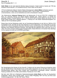 Diese Arbeit reicht bis zur Hausnummer 132. Er hat durch Befragungen die Besitzer der Anwesen bis etwa 1850 erfasst.
