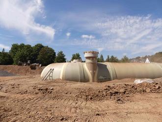 Als Ersatz wird nun auf der gegenüberliegenden Wiese ein neues Volumen in Form eines Stauraumkanals hergestellt. Dieses puffert die über die Kanalisation ankommenden Mischwässer aus den Flächen von Horas, Niesig, Teilen von Lehnerz und dem Aschenberg. Anschließend wird das Mischwasser gedrosselt über den angrenzenden Hauptsammler zur Kläranlage Gläserzell geleitet und dort gereinigt. Insgesamt ist ein Gebiet mit einer Einwohnerzahl von ca. 9.000 an diesen Stauraumkanal angeschlossen, der zu einer ganzen Reihe von Speicheranlagen gehört, die der AVF im Verbandsgebiet betreibt.