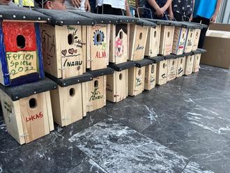 Die fertigen Nistkästen, die mithilfe von Vereinsmitgliedern des NABU Petersberg von den Ferienspielkindern zusammengebaut wurden.