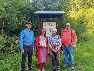 Klaus Spitzl, Evelyn Krahe, Regina Rinke und Stefan Dehler freuen sich, wenn die Rhöner Sagenwanderungen weiterhin gern genutzt werden. / Foto: Anna-Lena Bieneck