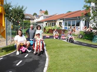 Pünktlich zum Beginn des neuen Kindergartenjahres ist in der Kita Kolibri in Petersberg eine neue Bobbycar-Rennstrecke eingeweiht worden. Auf dieser können die Kinder nach Herzenslust spielen, sich kleine Wettkämpfe liefern und einiges über das Thema Verkehrssicherheit lernen.