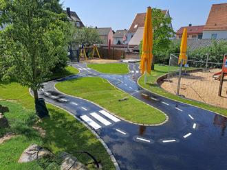Die Verwaltung hatte schon länger vorgehabt, die Wege im Außenbereich der Einrichtung zu erneuern. Gemeinsam mit dem Kita-Team um Leiter Lars Hütsch ist dann die Idee eines Parcours für Fahrzeuge entstanden. „So haben die Kids eine weitere niedrigschwellige Spielmöglichkeit in der vielgenutzten Außenanlage erhalten“, begrüßt Bürgermeisterin Claudia Brandes das Projekt.