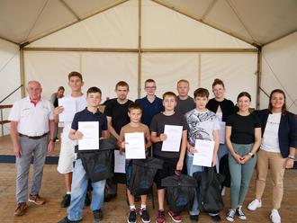 Magdalena Heil von der Gemeinde Petersberg, die durch das Programm der Sportlerehrung führte, konnte dann im weiteren Verlauf des Programms die insgesamt 58 Sportlerinnen und Sportler aus der Großgemeinde namentlich bekannt geben, die bei Wettkämpfen in den Jahren 2023 und 2024 besonders erfolgreich waren. Die Sportler/innen wurden einzeln bzw. mit ihrer Mannschaft zur Ehrung auf die Bühne gebeten, um dort Präsente für ihre herausragenden sportlichen Leistungen in Empfang zu nehmen. Außerdem zeigten der TV Petersberg und der Judoclub auf der Bühne ihr Können.