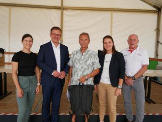 Turnusgemäß veranstaltete die Gemeinde Petersberg - vertreten durch den Fachausschuss für Soziales, Vereine und Kultur, Senioren und Jugend - in diesem Jahr wieder eine Sportlerehrung. Das Bürger- und Weinfest auf dem Rathausplatz bot den passenden Rahmen für diese Ehrung. Somit konnte Bürgermeisterin Claudia Brandes am 17. August neben den zu ehrenden Sportlerinnen und Sportler auch einen Rekordbesuch von sportinteressierten Bürgerinnen und Bürgern auf dem Rathausplatz verzeichnen.