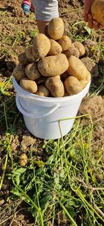 So waren in kurzer Zeit alle Eimer randvoll mit großen und kleinen Kartoffeln gefüllt. Das war aber längst noch nicht alles. Nach einer kleinen Trinkpause wurde es spannend.