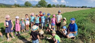 Auf dem Kartoffelacker haben die Kinder des Kindergarten Burgenlands aufmerksam Herr Peschl zugehört. Es wurde kindgerecht die wertvolle Frucht „Kartoffel“ erklärt. Von der Blüte bis zur reifen Kartoffel konnten die Kinder anhand eines Plakates alles gut nachvollziehen.