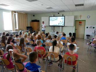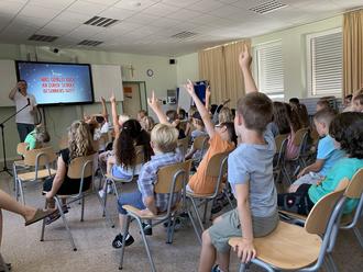 Der Marburger Kinderbuch-Autor Sven Gerhardt hat in der Johannes-Hack-Schule aus dem neuesten Band der „Der fabelhafte Herr Blomster“ gelesen. Die Reihe spielt in einer Schule, an der der titelgebende Herr Blomster der Hausmeister ist. Dieser erlebt allerhand Abenteuer mit den Schülern und Lehrern, entdeckt zum Beispiel geheime Gewölbekeller und Kinosäle in der Schule und ist immer zur Stelle, wenn die Kinder Hilfe benötigen. „Ich wollte mal eine Geschichte schreiben, an der ein Hausmeister der Held ist“, erklärte der Autor den Kindern. Mittlerweile gibt es schon drei Bücher mit Herrn Blomster.