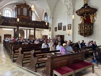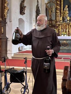 Pater Korbinian führte in der Klosterkirche durch die Geschichte des Klosters Kreuzberg. Selbstverständlich ging Pater Korbinian auf die alte Tradition des Bierbrauens im Kloster Kreuzberg ein.