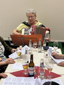 Seinen Ausklang fand der Ausflug, mit einem gemeinsamen Abendessen, bei Kopica Catering & Partyservice im Konrad-Trageser-Haus. Erika Müller begleitete mit dem Akkordeon einige Lieder. Passend zum Tag, wurde auch das Kreuzberglied gesungen.