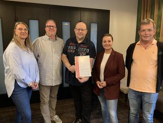 Von links nach rechts:Karin Schanne, Michel van Goethem (Hessen a la Carte), Stefan Faulstich (Landhotel Rhönblick), Bürgermeisterin Claudia Brandes, Thomas König (Rhön GmbH).
