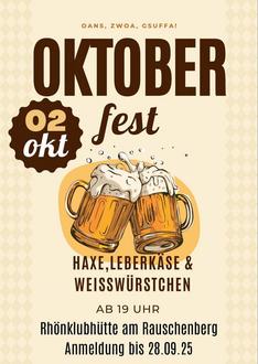 Unser Oktoberfest findet am Donnerstag, den 02.10.2025 um 19 Uhr in der Rauschenberghütte statt.