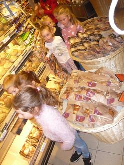 Früh am Morgen trafen sie sich vor der Tegut Filiale Kaiserwiesen, dort wurden sie von Frau Heinz begrüßt. Bei einer kurzen Vorstellungsrunde konnte jedes Kind erzählen, was es gefrühstückt hat. Anschließend bauten die Kinder gemeinsam mit Frau Heinz eine Ernährungspyramide auf. Nach einem kurzen Gespräch über gesunde Ernährung, durften die Kinder Lebensmittel für ein gesundes Frühstück „einkaufen“. Neben Getränken gab es Brötchen, Wurst und Käse, Müsli, Joghurt, Obst und Gemüse. Mitten in der Gemüseabteilung genossen wir dann unser leckeres Frühstück. Zum Abschluss gab es für die Kinder noch eine kleine Überraschung.