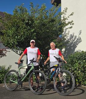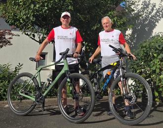 Die Petersberger Sportfreunde Hannes Bressel (rechts) und Gerhard Pitterle haben ihre Prüfungen erstmalig im Waidesgrundstadion abgelegt. Sie waren begeistert und haben sich mit einem Foto im Sportabzeichen-Finisher-Shirt 2025 bei den Verantwortlichen bedankt.