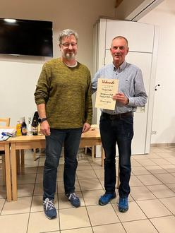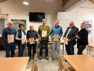 Im direkten Anschluss werden die Ehrungsurkunden für Mitgliedschaften im Verein verliehen über 25, 40, 50 und 60 Jahre. Außerdem werden zwei Mitglieder durch Urkunde zum Ehrenmitglied ernannt – Manfred Hahn und Jürgen Walter.