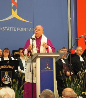 Für Frieden sei vom Volk Geduld gefordert. Am 3. Oktober seien Menschen aus zwei Systemen zusammengekommen. Dass da nicht alles von heute auf morgen gehe, sei verständlich. „Es braucht dafür Verständnis und Kenntnis. Es braucht Wohlwollen und Sympathie. Es braucht Freude an der Gemeinsamkeit und Freude an der Verschiedenheit – auch an den unterschiedlichen Mentalitäten und Dialekten“, führte der Bischof auf Point Alpha im Bezug auf eine wirkliche Vollendung der Einheit aus.