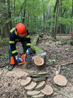 Die Kameradinnen und Kameraden der Feuerwehr der Gemeinde Petersberg investieren hier viele Stunden ihrer Freizeit, um für den Einsatzfall gut gerüstet zu sein. Insbesondere bei unwetterbedingten Einsätzen kommt es oft vor, dass umgefallene Bäume fachmännisch zerteilt und aus dem Weg geräumt werden müssen. Auch können instabile Bäume eine Gefährdung für den Straßenverkehr oder Fußgänger sein, sodass auch das Bäume fällen in das Einsatzportfolio der Feuerwehr fällt.