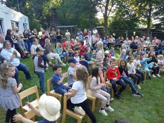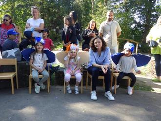 Es gab eine Anerkennung ihrer Arbeit und einen tosenden Applaus. Im Anschluss folgte ein buntes Programm. So haben die Kinder der Gruppe Burg Eulenstein ein Fest auf der Blumenwiese vorgespielt. In Kostümen gab es Käfer, Bienen, Schmetterlinge, Mäuse und Brummer zu sehen. Danach waren die fleißigen Handwerker von der Gruppe Burg Möwenfels dran, die zum Schluss mit ihren Trettraktoren ihre Kreise auf dem Platz zogen. Im Anschluss gab es viele Spielaktionen für die Kinder auf dem ganzen Kindergartengelände. Für das Leibliche wohl sorgte der Elternbeirat mit den hoch engagierten Eltern des Kindergartens Burgenland. Den Abschluss machte Kasperle und Seppel mit einem spannenden Stück, wo auch Bürgermeisterin Brandes und Frau Lindental nicht fehlen durften.