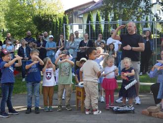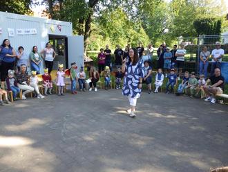 Bei besten spätsommerlichen Temperaturen feiert der Kindergarten Burgenland sein 30- jähriges Bestehen am Weltkindertag. Frau Odenwald begrüßte alle Gäste aufs herzlichste, im besonderem Frau Lindental. Frau Lindental arbeitete als Kindergartenleitung von der ersten Minute des Bestehens der Kita Burgenland. Mit viel Liebe und Hingabe hat Frau Lindental bis Ende 2023 den Kindergarten geführt und so manchen Bürgermeister erlebt. Das war das Schlüsselwort für Bürgermeisterin Brandes, die dies zum Anlass nahm, die Arbeit von Frau Lindental zu würdigen und sich zu bedanken.