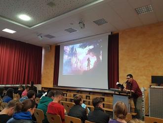 Den Schülerinnen und Schülern der Jahrgangsstufe neun las er aus seinem 2023 entstandenen Fantasy-Roman „Die Lüge von Feuer und Ewigkeit“ vor.