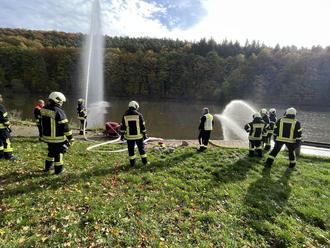 Am Haunestausee Marbach wurde auf die Gefahren im Hochwassereinsatz hingewiesen und der Einsatz und Betrieb von verschiedenen Pumpen und Aggregaten geübt.