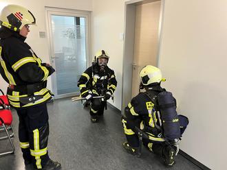 Einen Einsatz ohne Unwetterbezug stellte eine ausgelöste Brandmeldeanlage im Rathaus dar. Hier mussten die Kameradinnen und Kameraden die Brandquelle finden und Schläuche mit Löschwasser ins Rathaus legen.
