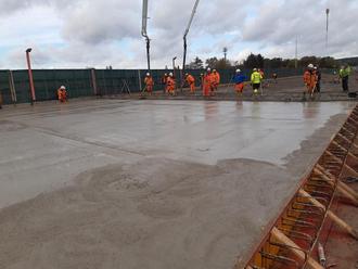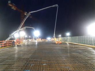 Die Betonage des neuen östlichen Teilbauwerkes der A7 Talbrücke Götzenhof (Fahrtrichtung Nord) ist zügig und erfolgreich abgeschlossen worden. Insgesamt wurden 2.100 m3 Beton, 250t Betonstahl und 78t Spannstahl eingebaut. Der Beginn der Arbeiten war am 01.11. um 6:00 Uhr. Das Ende der Arbeiten war am 2.11.22 um 4:30 Uhr. Die unter der Brücke verlaufenden Kreisstraßen K6 und K1 waren für die Dauer der Arbeiten zeitweise voll gesperrt.