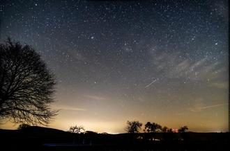 Blick vom Rödergrund in Richtung Fulda/Petersberg bei Nacht. Die enorme Aufhellung des Nachthimmels über den städtischen Bereichen macht die Sterne von dort aus nahezu unsichtbar und behindert auch die Wahrnehmung der Sterne von der Rhön aus. (Foto: Stefan Will)