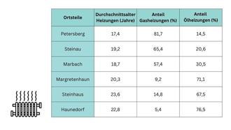 Die gute Nachricht vorweg: Niemand muss seine funktionierende Heizung austauschen. Erst wenn die Heizung nach dem 30.06.2028 nicht mehr reparierbar ist und ersetzt werden muss oder die Heizanlage ein Alter von 30 Jahren überschritten hat, greifen gesetzliche Vorgaben. Ab 2045 dürfen Heizungen nur noch mit erneuerbaren Energien betrieben werden. Es gilt dann ein Betriebsverbot von Heizkesseln mit fossilen Brennstoffen. Bis dahin ist es aber noch ein weiter Weg: Fast 90 Prozent der Häuser in der Gemeinde werden aktuell mit Gas oder Öl beheizt. Wärmepumpen werden nur in 5 Prozent der Gebäude genutzt, Holz, Biomasse oder Wärmenetze spielen quasi keine Rolle. Zugleich ist die Hälfte der Heizungen 20 Jahre und älter - hier sind laut Pessier und Klons also in den nächsten Jahren große Investitionen nötig.