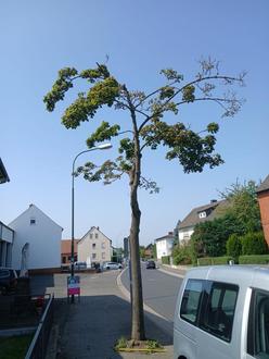 Als Ersatzbäume werden schmalkronige, stadtklimafeste und trockenheitsresistente Sorten nachgepflanzt.