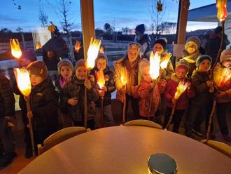 In einer kleinen Andacht spielten die Schulanfänger die Legende des hl. Martin vor. Weiterhin wurden Fürbitten, das Vaterunser und ein Segensgebet gesprochen und Martinslieder festlich gesungen.