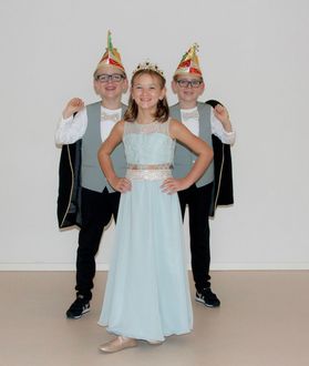 Es folgte das erste Highlight des Abends: Die kleinen Tollitäten der kommenden Kampagne wurden feierlich bekannt gegeben. Aus dem Rahmen einer Puppentheaterkulisse präsentierte sich Kinderprinzessin Johanna (Johanna Völler) gemeinsam mit ihren Adjutanten Noah und Oskar Schliemann zauberhaft dem närrischen Publikum mit Ihrer ersten Ansprache.