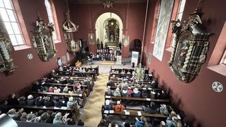 Das Martinsfest begann für die Kinder der Kita Kolibri am 11.11.2025 um 10:00 Uhr in der Liobakirche. Viele Eltern und Großeltern hatten sich die Zeit genommen, das berührende Martinsspiel der Workshopkinder sowie den stimmungsvollen Lichtertanz der „mittleren“ Kinder mitzuerleben. Zelebriert wurde der „Wortgottesdienst“ von Gemeindereferent Stefan Schönberner.